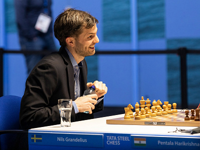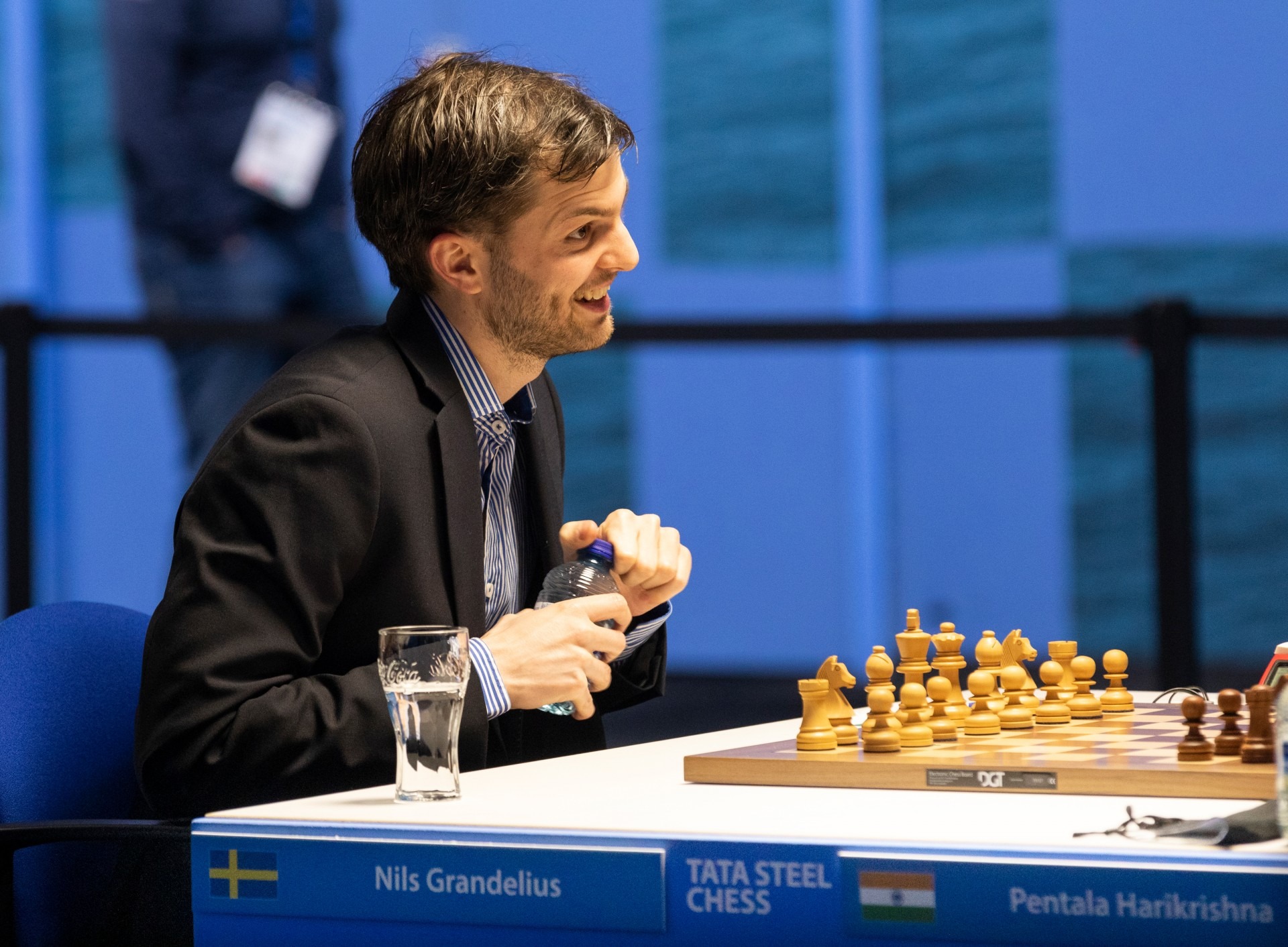 Первое поражение, играя белыми фигурами, записал в свой пассив неожиданный лидер турнира Нильс Гранделиус. В партии с Харикришной он небрежно провёл небольшой отрезок партии и оказался в проигранном положении. Индийский же гроссмейстер вошёл в лидирующую группу.