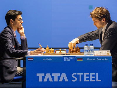 Долго прессинговал белыми фигурами рождённый в Санкт-Петербурге Аниш Гири своего оппонента Александра Донченко, выступающего под немецким флагом. Александру проигрывать в третий раз подряд никак было нельзя, и он с большим трудом добыл заветную половинку очка.