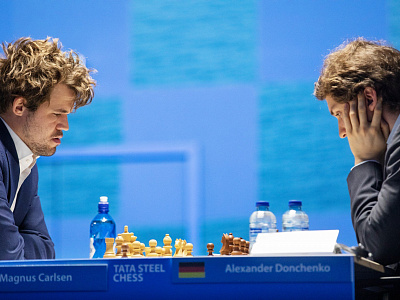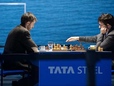 После заслуженного выходного дня возобновились шахматные баталии на супертурнире в Вейк-ан-Зее. В 5-м туре случилась одна лишь результативная партия. Но их должно было быть намного больше. Упорное сопротивление соперников и не лучшая собственная форма не позволила некоторым гроссмейстерам пополнить очковую копилку максимальным образом. Не смог реализовать позиционный перевес в эндшпиле Чемпион мира. На него это не похоже. Раньше он чуть лучшие и равные эндшпиля выкатывал на «ура». В этот раз очень серьёзное сопротивление Чемпиону оказал Александр Донченко, который находится внизу турнирной таблице и проигрывать больше не имеет права. А Чемпиону пора задуматься о причинах недобора очков – это серьёзный симптом. Драматично сложилась партия между испанским маэстро Гихарро и гроссмейстером из Норвегии Арьяном Тари. В хорошо изученном в последние 20 лет берлинском эндшпиле испанец получил серьёзный перевес. Но выигрыша не находилось. Затем он отдал Слона за три пешки, намереваясь провести три связанные проходные в Ферзи. Тари хладнокровно защищался, Гихарро перегнул палку и в какой-то момент мог проиграть, найди норвежец простой ход Слоном. В этом случае компьютер оценивал позицию гроссмейстера из Норвегии +60. Но он прошёл мимо счастливой возможности и была зафиксирована «валидольная» (для болельщиков) ничья! Очень высокую сопротивляемость продемонстрировал российский гроссмейстер Андрей Есипенко. В очень упорной борьбе, имея чёрные фигуры, он не дал себя обидеть Фабиано Каруане, одному из явных фаворитов турнира. В хорошо изученном варианте Английского начала он ни в какой момент не имел худшей позиции. Ничего не смог извлечь из капельку лучшей позиции молодой талант Алиреза Фируджа. Голландского гроссмейстера ван Фореста родители,вероятно, тоже не в дровах нашли. Он стойко оборонялся, тактически грамотно реагировал на попытки белых фигур реализовать преимущество двух Слонов, и смог записать в свой актив заслуженные пол-очка. Индийский гроссмейстер Харикришна разыграл чёрными против Аниша Гири принятый ферзевый гамбит, излюбленный вариант Тренера женской сборной России Сергея Рублевского. Гири, как маленький удав, стал потихоньку душить своего соперника, но допустил досадный промах, и съеденный наполовину кролик выскочил из пасти.Ничья. Два польских гроссмейстера –Войташек и Дуда, сделали между собой бесцветную ничью. Видимо, договор был – не отнимать друг у дружки шансы. И, наконец, Гранделиус! Шведский гроссмейстер против Вашье-Лаграва очень творчески разыграл белыми сложнейший вариант Сицилианской защиты, в котором когда-то давно, играя за чёрных, ловил свою рыбку самый знаменитый шахматный рыбак Бобби Фишер. В разработанном почти до 25 хода варианте Нильс Гранделиус оказался чуть более прозорливым, чем его именитый французский маэстро. Нанёс несколько зубодробительных тактических ударов и, одержав яркую победу, вышел в единоличные лидеры.