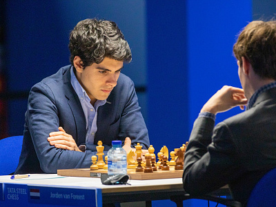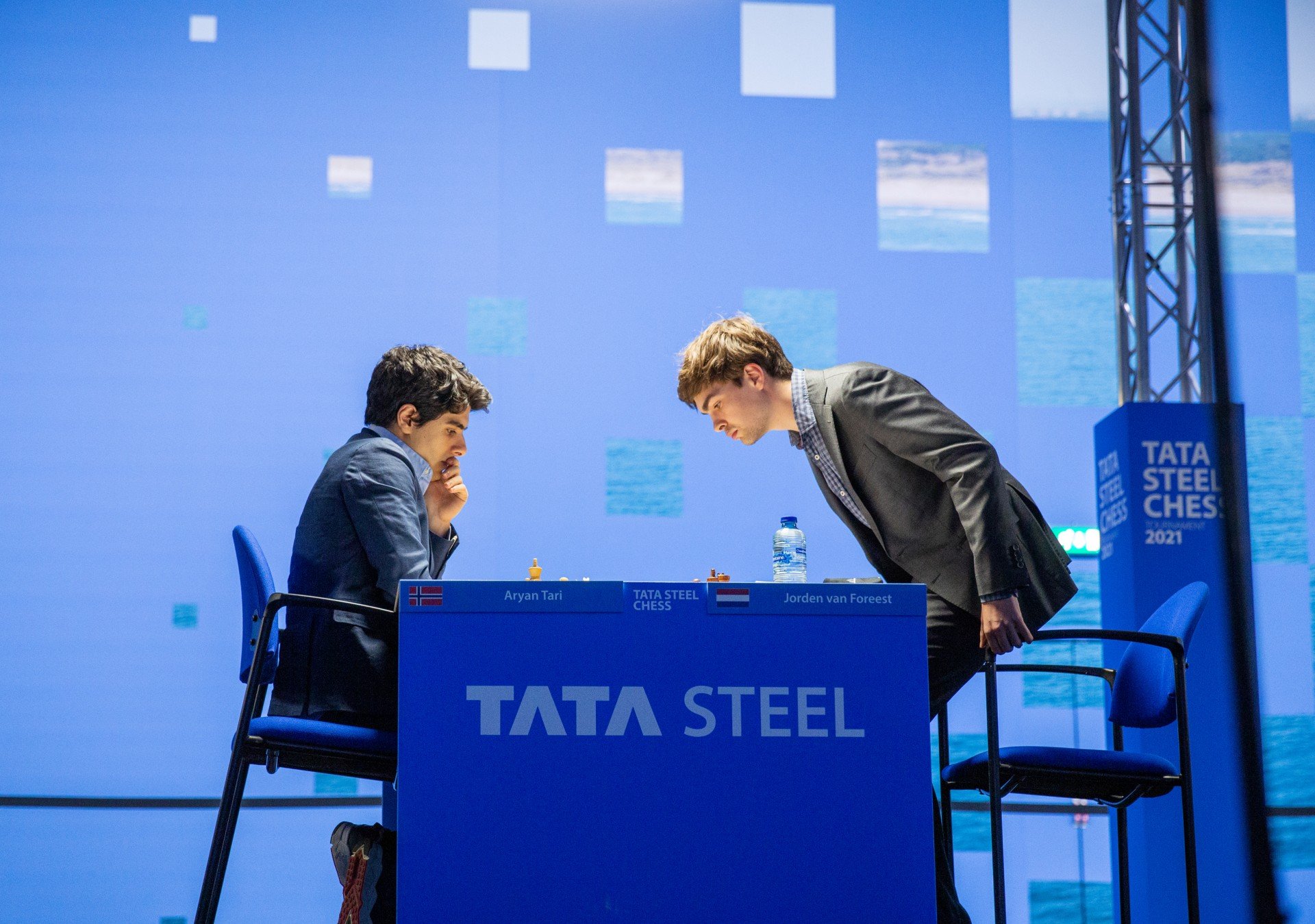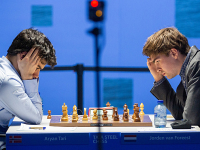 Умение играть нестандартно продемонстрировали зрителям дебютанты турнира норвежец Арьян Тари и голландский гроссмейстер ван Форест. В редко встречающемся варианте Испанской партии игравший белыми Тари не был основательно готов в дебюте и не смог разобраться в тактических осложнениях, которые сам же и навязал сопернику. Не станем умалять умение молодого голландца играть позиции с инициативой. Он выдал хорошую партию. Соперник его к 20-му ходу попал под жуткую атаку и после 32-го хода соперники стали расставлять фигуры для новой партии.