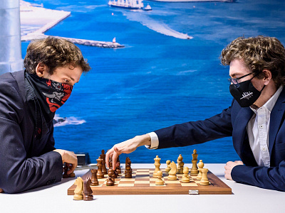Дебютную катастрофу потерпел чёрными Вашье-Лаграв в варианте «Отравленной пешки» в Сицилианке. Его соперник американец Каруана, вероятно, подготовил дома усиление игры в хорошо известном разветвлении. Партия быстро перешла в эндшпиль с лишней пешкой у чёрных, но качество расположенных боевых единиц Каруаны оказалось гораздо важнее количества. Фабиано железной рукой довёл преимущество до победы, не дав дотерпеть Максиму даже до контрольного 40-го хода.