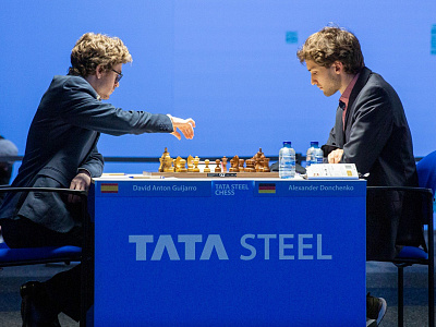 Итак, Антон Гихарро (его мы называем то Антон, то Давид, но у него действительно два имени, и - поди узнай – какое настоящее) белыми в варианте Дракона против Александра Донченко избрал не самую принципиальную расстановку, решив перенести тяжесть борьбы поглубже в миттельшпиль. Донченко с помощью разменов добился упрощения позиции и ничьей.