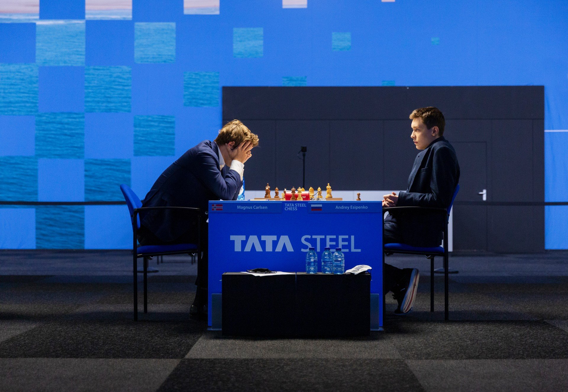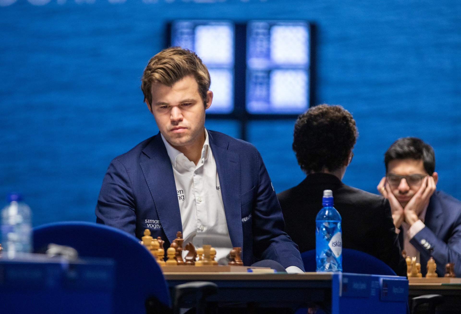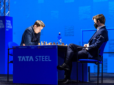 Российский гроссмейстер Андрей Есипенко белыми в Сицилианской защите против Магнуса Карлсена применил домашнюю заготовку и пожертвовал пешку. Карлсен взял пешку, но затем пропустил несложный удар, который, будь он в нормальной форме, не зевнул бы и при одноминутном контроле. Его позиция разваливалась на глазах. Надо отдать должное российскому гроссмейстеру, он не совершил грубых ошибок и довёл партию до победы. Чувствуется, что Чемпион явно не в форме, он пресыщен шахматами. Переиграл. Такое со всеми случается. Ему не хватает свежести и лёгкости. Думается, в этом турнире он не сможет претендовать на 1-е место.