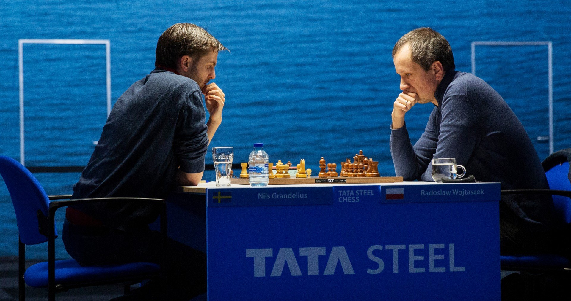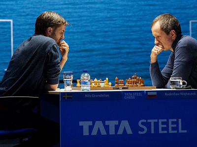 Радослав Войташек разыграл чёрными против недавнего лидера Нильса Гранделиуса старый вариант Каро-Канна и получил очень хороший эндшпиль, о котором приверженцы этой защиты только мечтают. Но Гранделиус нашёл интересный активный план, получил позицию с «хорошим» Конём в центре доски и добился ничейной позиции.