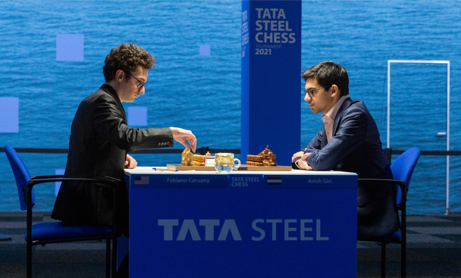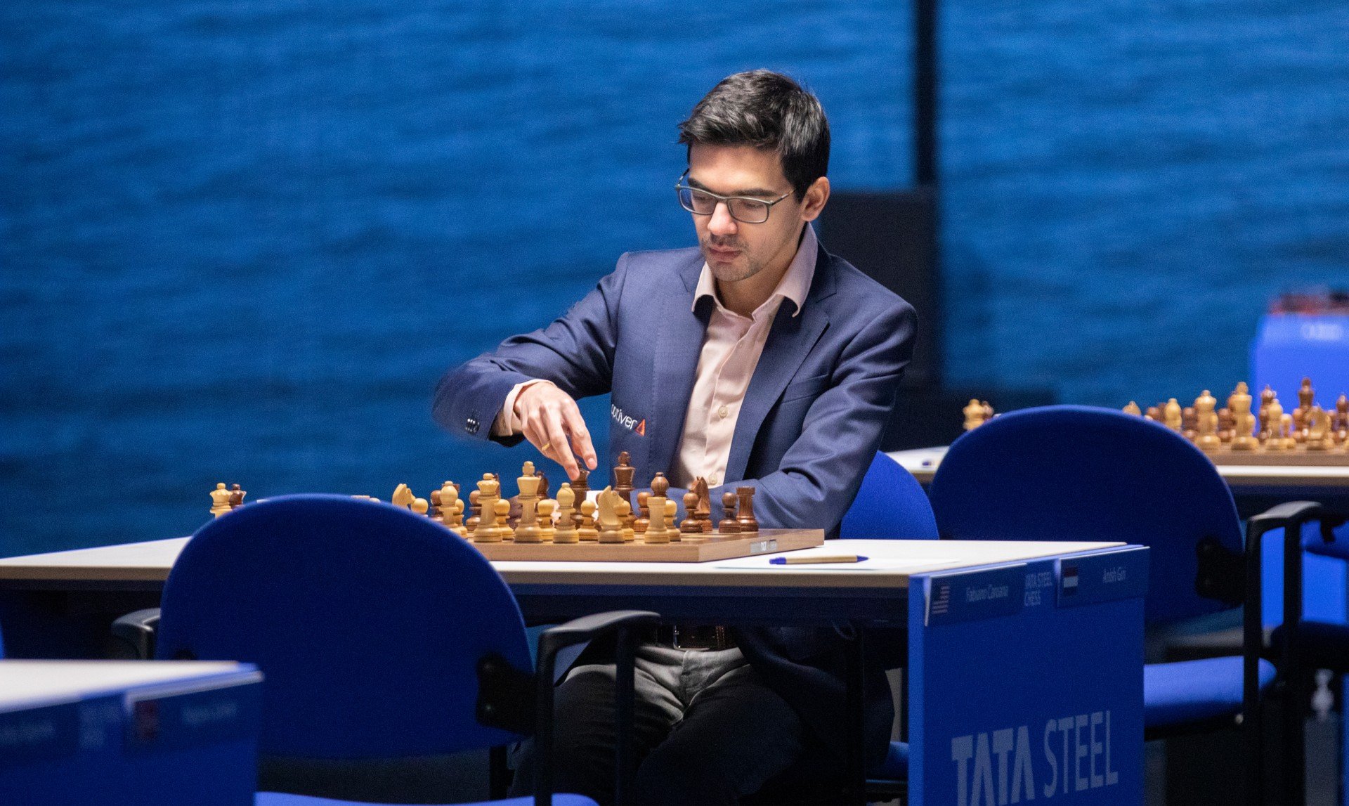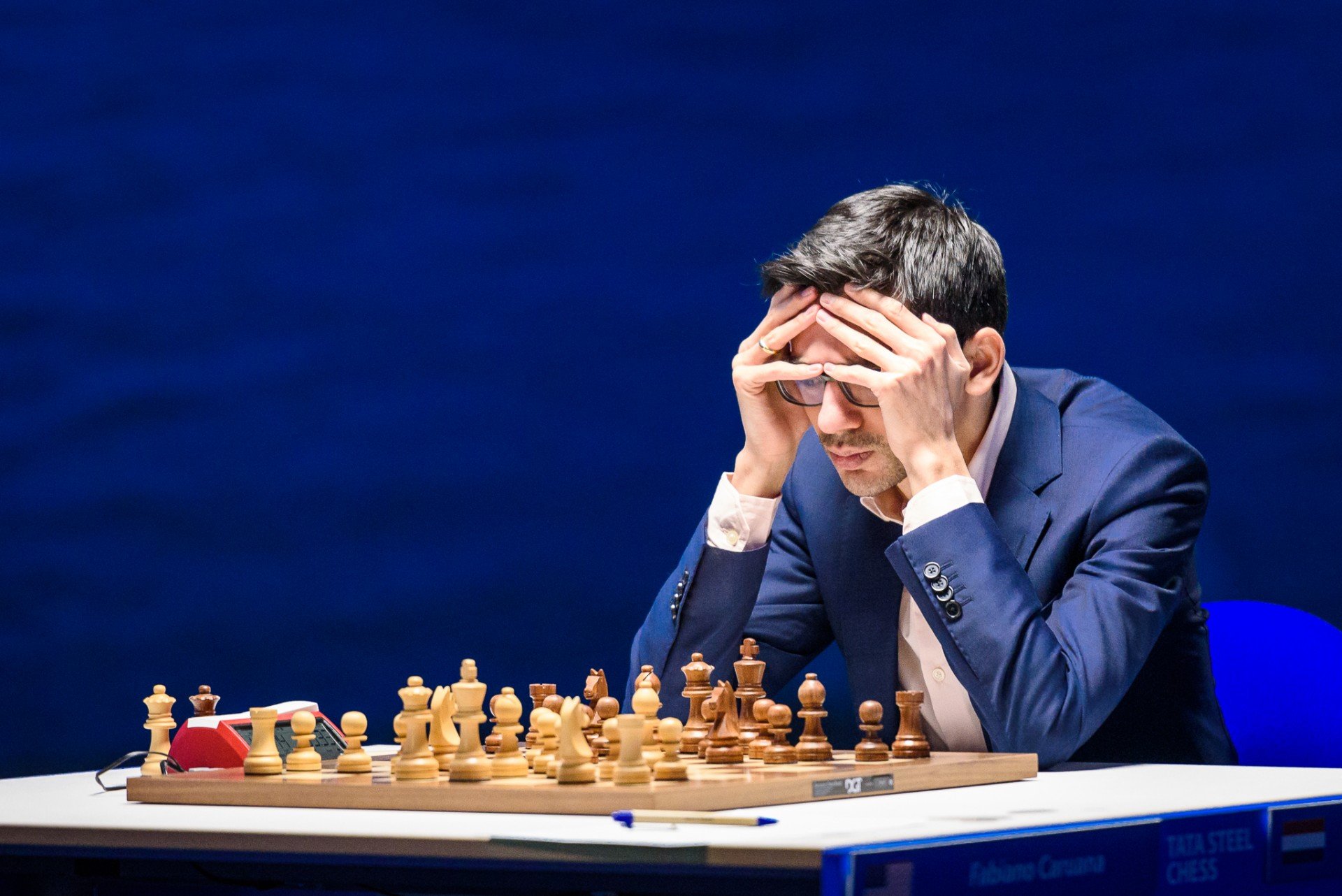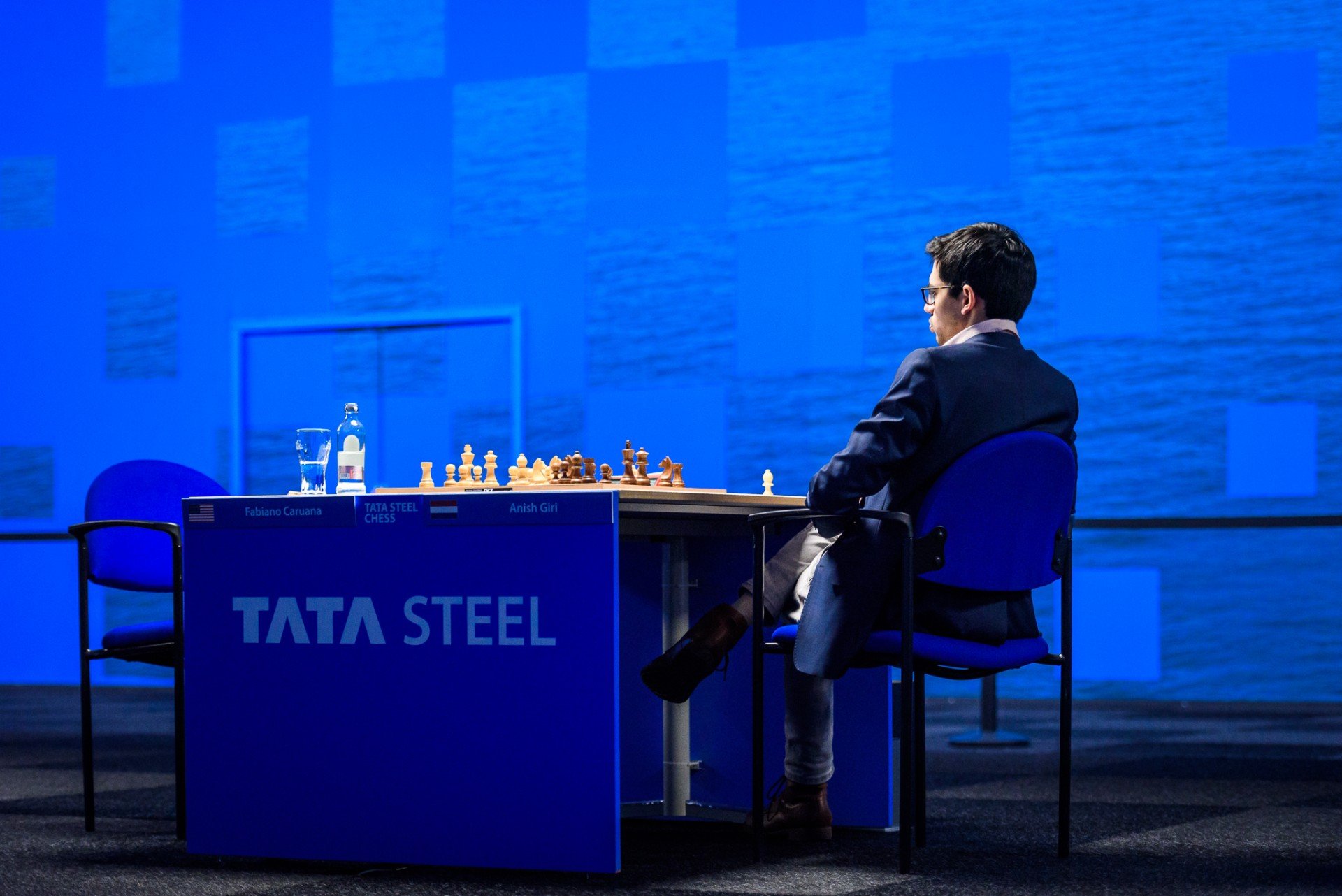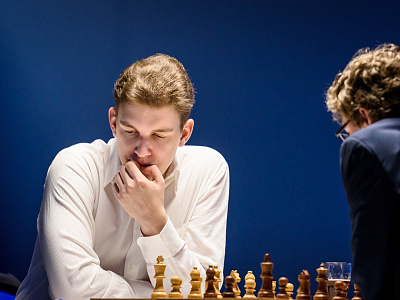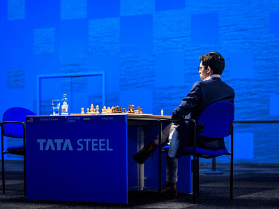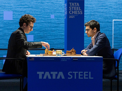 Стратегически рискованную атаку начал белыми Фабиано Каруана против Аниша Гири. Голландец наш грамотно вёл игру и без труда уравнял позицию, правда, большего добиться не смог.