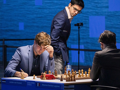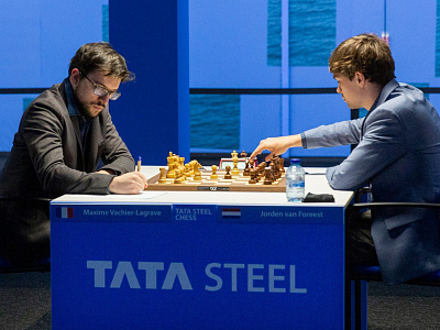 Бледно выглядит на турнире француз Вашье-Лаграв. Белыми против молодого голландца ван Фореста он получил перспективную позицию в Испанской партии. Ван Форест гениально (если это была не домашняя заготовка) пожертвовал временно две лёгких фигуры на ровном месте, раскрыв позицию белого Короля. Когда тактическая перепалка закончилась, выяснилось, что небольшого преимущества белых может не хватить для чего-то серьёзного. Так и получилось – ничья в эндшпиле на 30-м ходу.