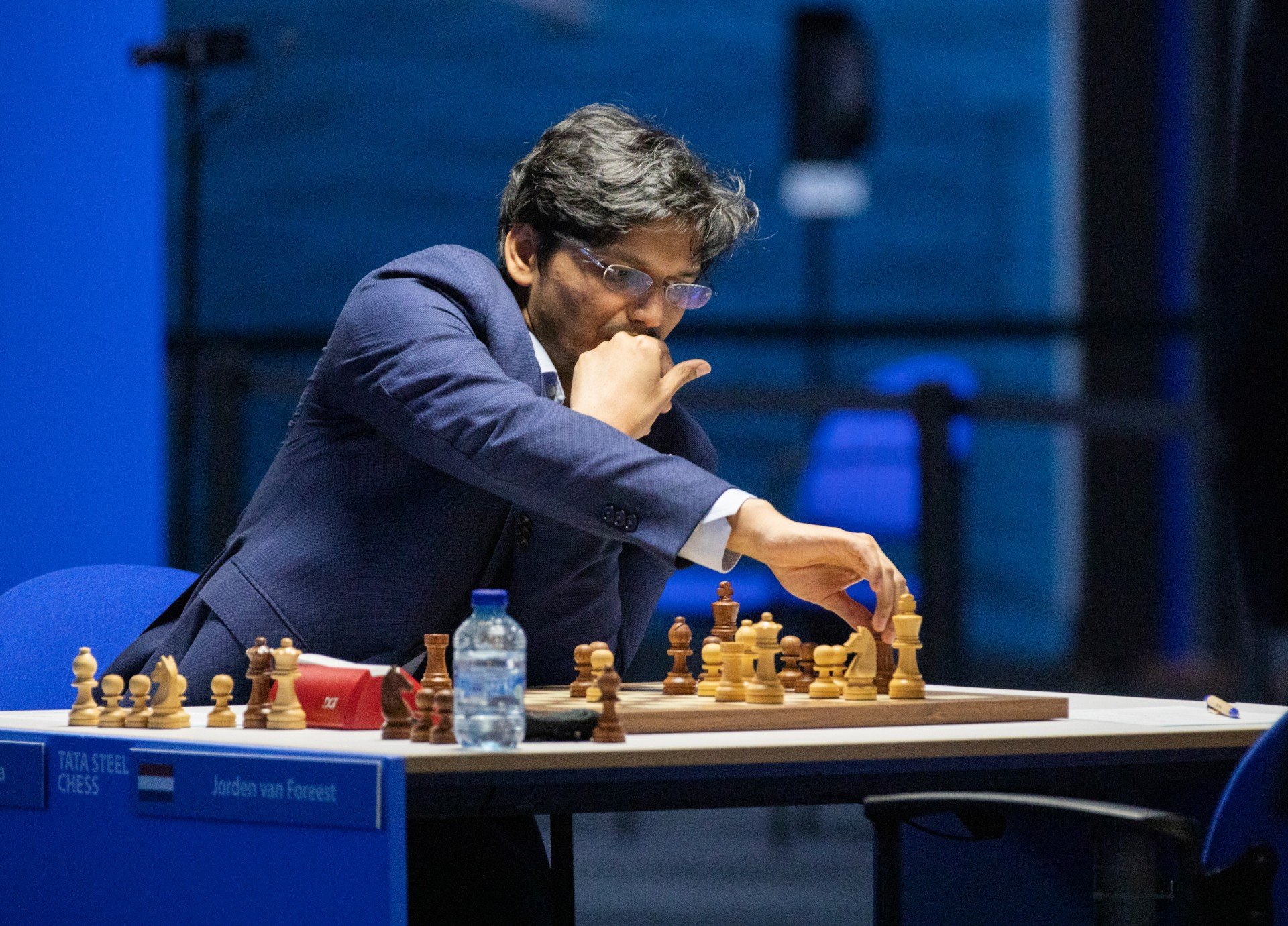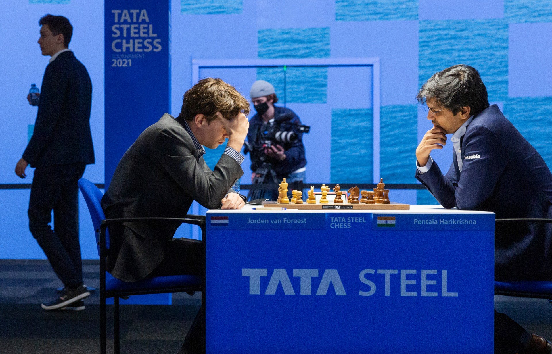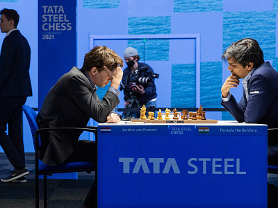 В лидеры выходит ван Форест, голландский гроссмейстер, которого перед началом турнира специалисты относили к группе аутсайдеров. В очень творческой борьбе белыми фигурами против индийца Харикришны ван Форесту удалось получить запутанную позицию с лучшими шансами. Он принял жертву фигуры и точными ходами добился выигрышного положения. Молодец!