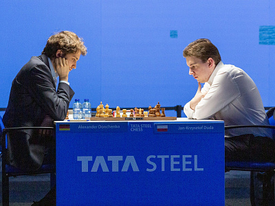 Александр Донченко белыми фигурами получил перспективную позицию против Дуды в улучшенной Защите Тарраша. Но польский гроссмейстер чёткими действиями смог удержать равновесие.