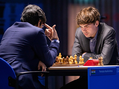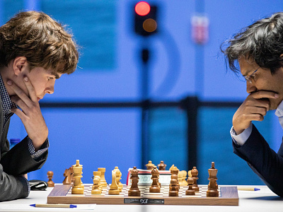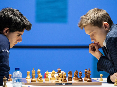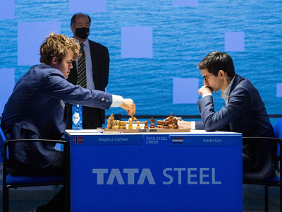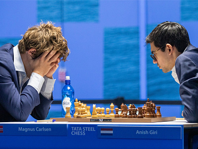 Как о бетонную стену бился Магнус Карлсен белыми фигурами против гениального защитника Аниша Гири. В Итальянской партии Чемпион честно пытался выиграть, но соперник не дал себя обидеть. Ничья!