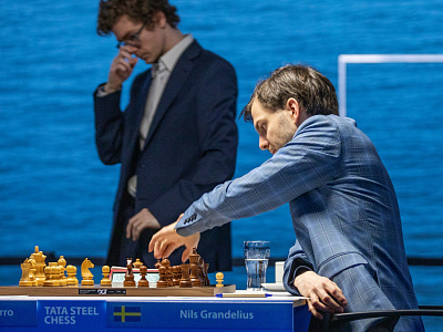Испанский гроссмейстер Гихарро попытался выйти в сложнейший Грюнфельд белыми против Нильса Гранделиуса. Но шведский маэстро оказался хорошо готовым. В сложной борьбе по центру было разменяно много фигур и пешек. Но равновесие не нарушалось. Ничья!